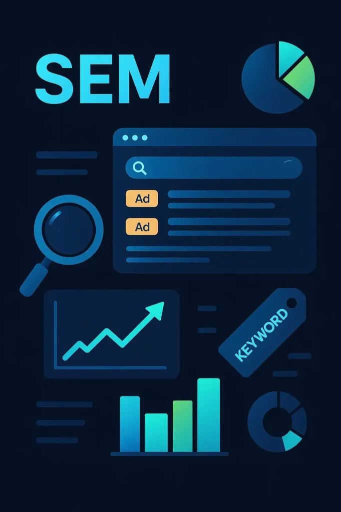 • Search Engine Marketing (SEM) is the umbrella term that encompasses strategies to increase visibility on search engine results pages (SERPs). Traditionally, SEM included both paid (PPC) and organic (SEO) efforts.